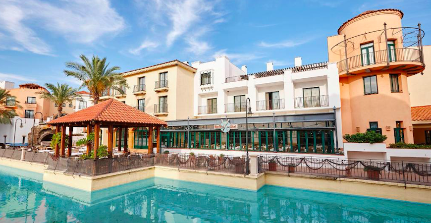Im Hotel PortAventura können Sie die wirklich mediterrane Atmosphäre genießen. Dieses PortAventura Hotel wurde als kleines und authentisches Fischerdorf am Meer erbaut. Die 500 Hotelzimmer verteilen sich auf das Gelände in verschiedenen Gebäuden. Das Hotel PortAventura hat einen eigenen Eingang zum Freizeitpark. Außerdem können Sie den Strand von Ihrer Unterkunft aus bequem zu Fuß erreichen. Das Hotel verfügt über nicht weniger als vier verschiedene (Buffet-)Restaurants, in denen Sie eine große Auswahl an internationalen Gerichten genießen können. Das Hotel PortAventura hat auch zwei schöne Swimmingpools mit Liegestühlen, die von Palmen und anderen tropischen Pflanzen umgeben sind. Auch an die Kleinen wurde mit separaten Planschbecken und einem Spielplatz gedacht. In der Hochsaison gibt es auch ein Animationsprogramm. Wenn Sie sich nach einem langen Tag in den Freizeitparks von PortAventura World entspannen möchten, können Sie als Hotelgast die Wellness Inrichtungen (Sauna, Dampfbad, Sprudelbad, Hamam und Fitnessraum) kostenlos nutzen.